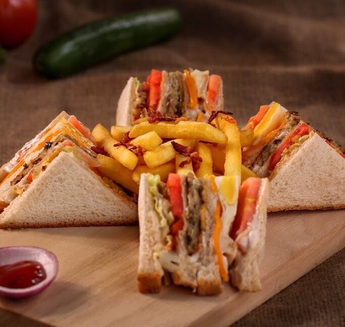 Sandwich ức gà nướng , thịt xông khói , phô mai